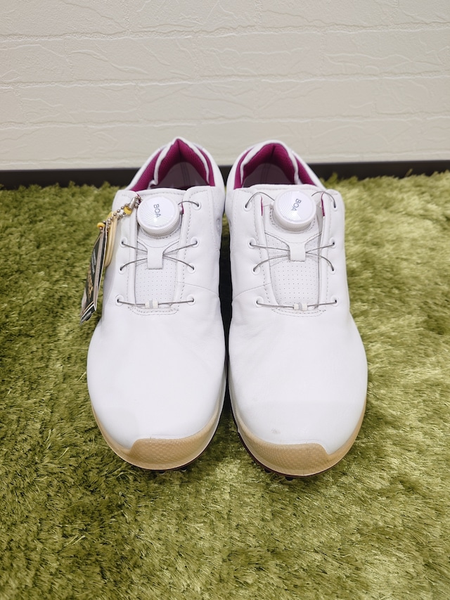 【商品概要】 メーカー:ecco サイズ:EU 37(23.5cm相当) 素材:アッパー レザー ■人間工学に基づいた快適な履き心地のゴルフシューズ! eccoのレディースゴルフシューズは、レザー素材を使用し、デザインと機能性を両立させた一足です!人間工学に基づく設計により、足の形にフィットし、軽やかなプレーを実現します。のびのびとした動きで、コースを楽しむことができます! ■優れたクッション性で長時間のプレーをサポート! 特殊に設計されたミッドソールは、足元の衝撃をしっかり吸収し、次の動きへのスムーズな移行を実現。長時間のラウンドでも快適さを保ち、プレーに集中できる理想的な環境を提供します。疲れにくさを実感しながら、思い切り楽しめるゴルフタイムを味わってください! ■スタイリッシュなピンクカラーでファッション性もアップ! eccoのレディースゴルフシューズは、その美しいピンク色が特徴で、ゴルフ場での存在感を高めます!洗練されたデザインは、ゴルフシーンだけでなく、カジュアルなお出かけにもぴったり。あなたの個性を引き立てる一足として、様々なシーンで活躍します。自分のスタイルを大切にしながら、楽しいゴルフライフを満喫してください!