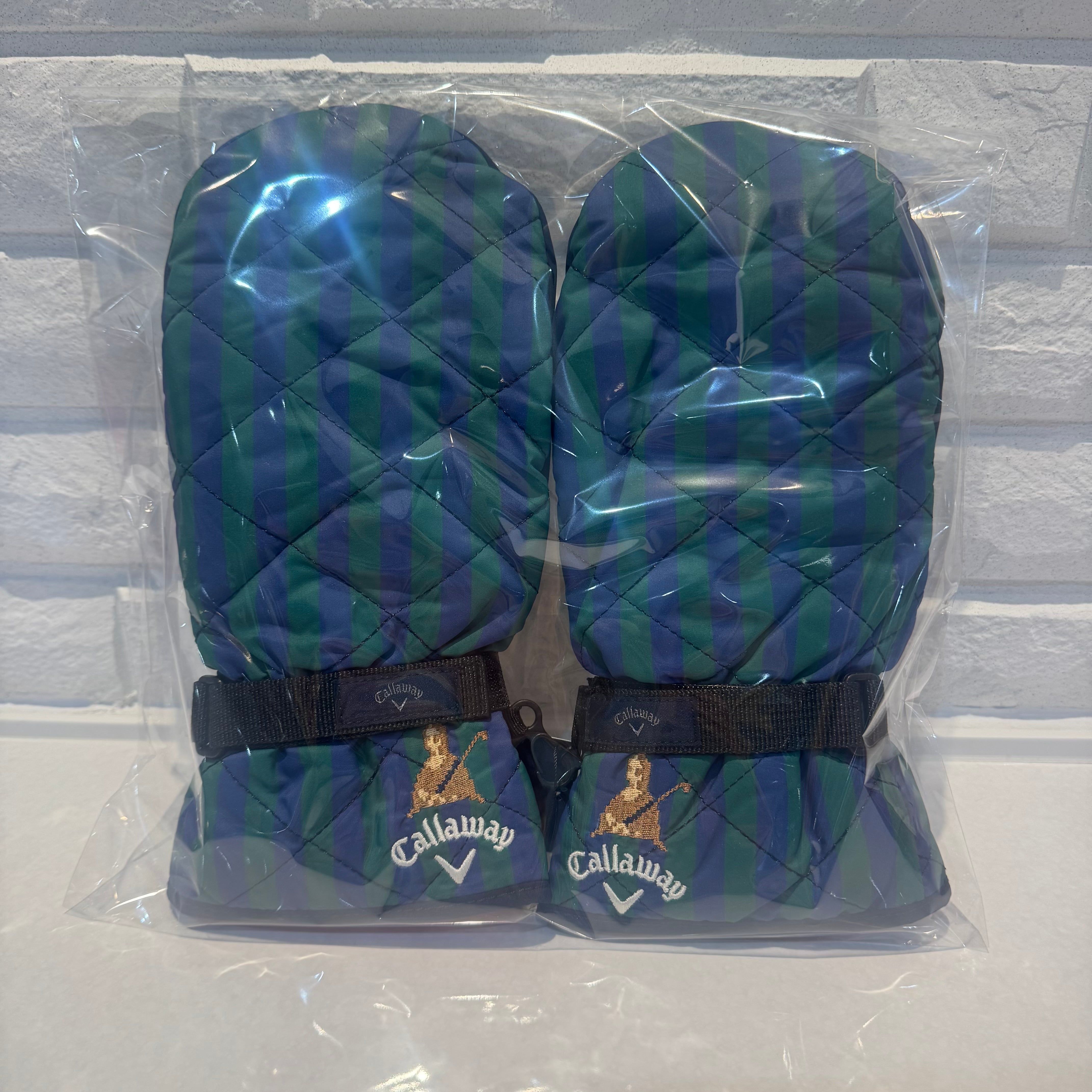 キャロウェイらしい上品なグリーン×ネイビーのストライプ柄のハンドウォーマーミトン。